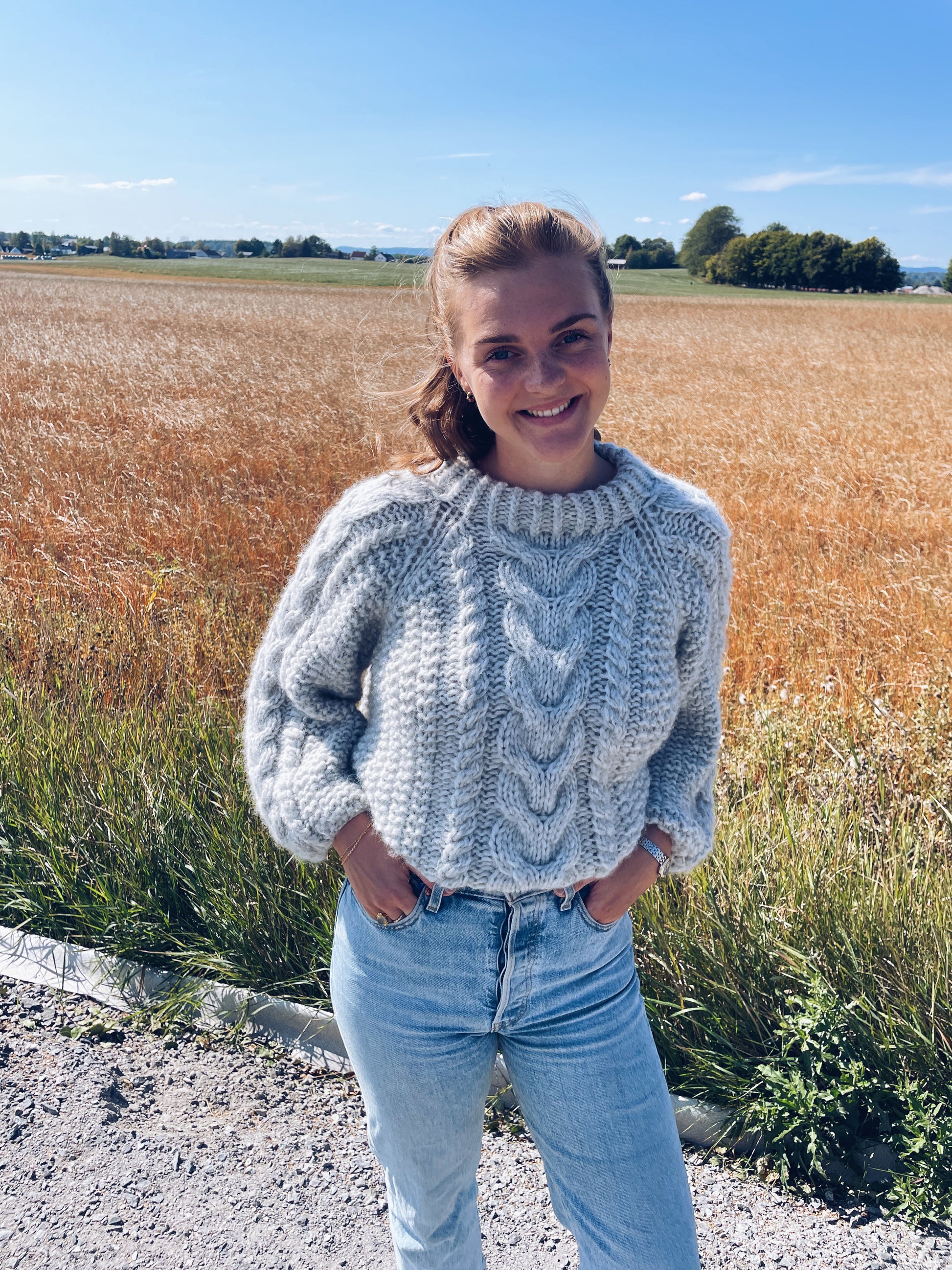 Genseren på bildene er strikket i størrelse M.