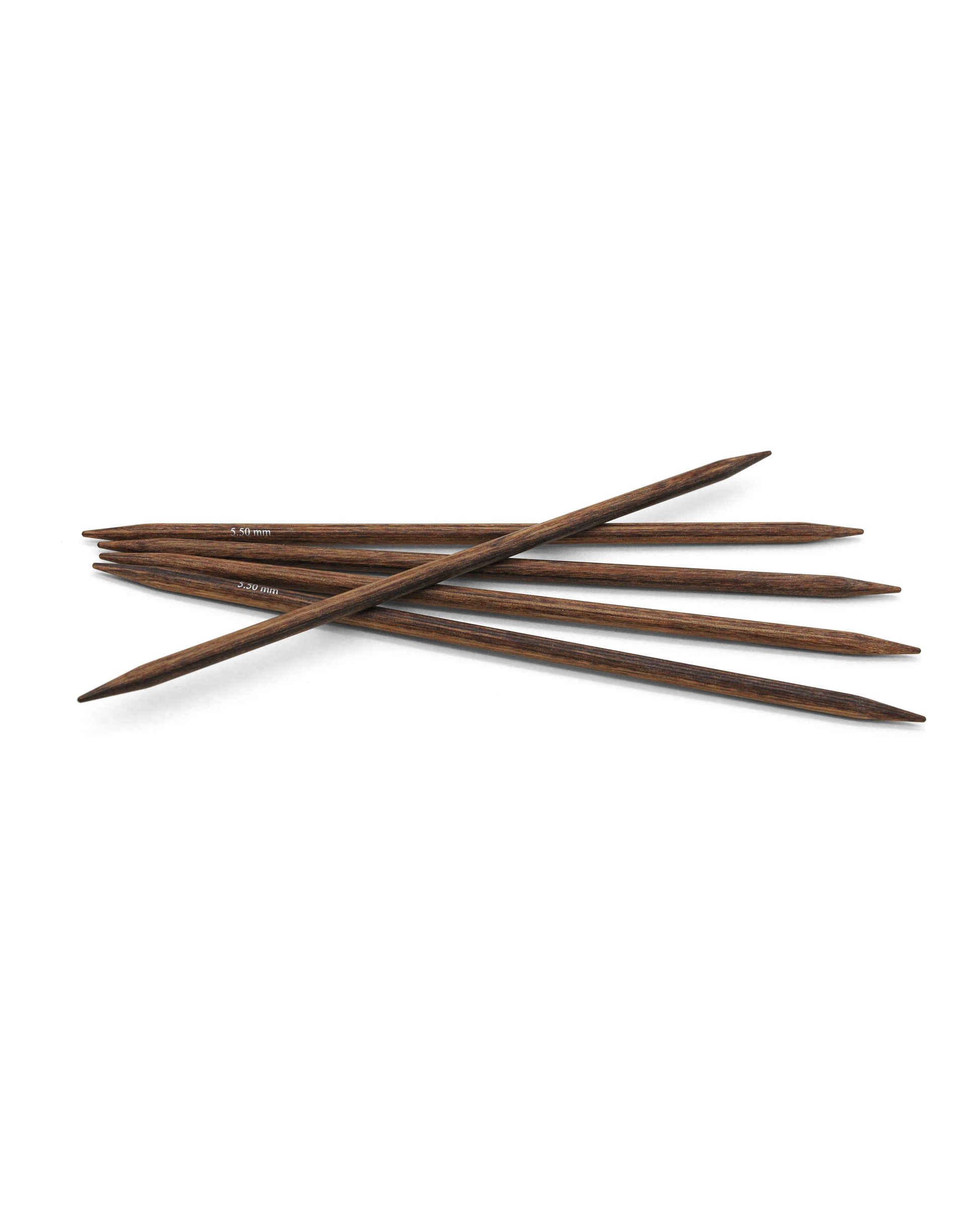 Strømpepinner i vakker nøttetrefarget, laminert bjørk med glatt overflate og presise spisser. Gir en behagelig strikkeopplevelse og passer til alle typer garn og prosjekter.
