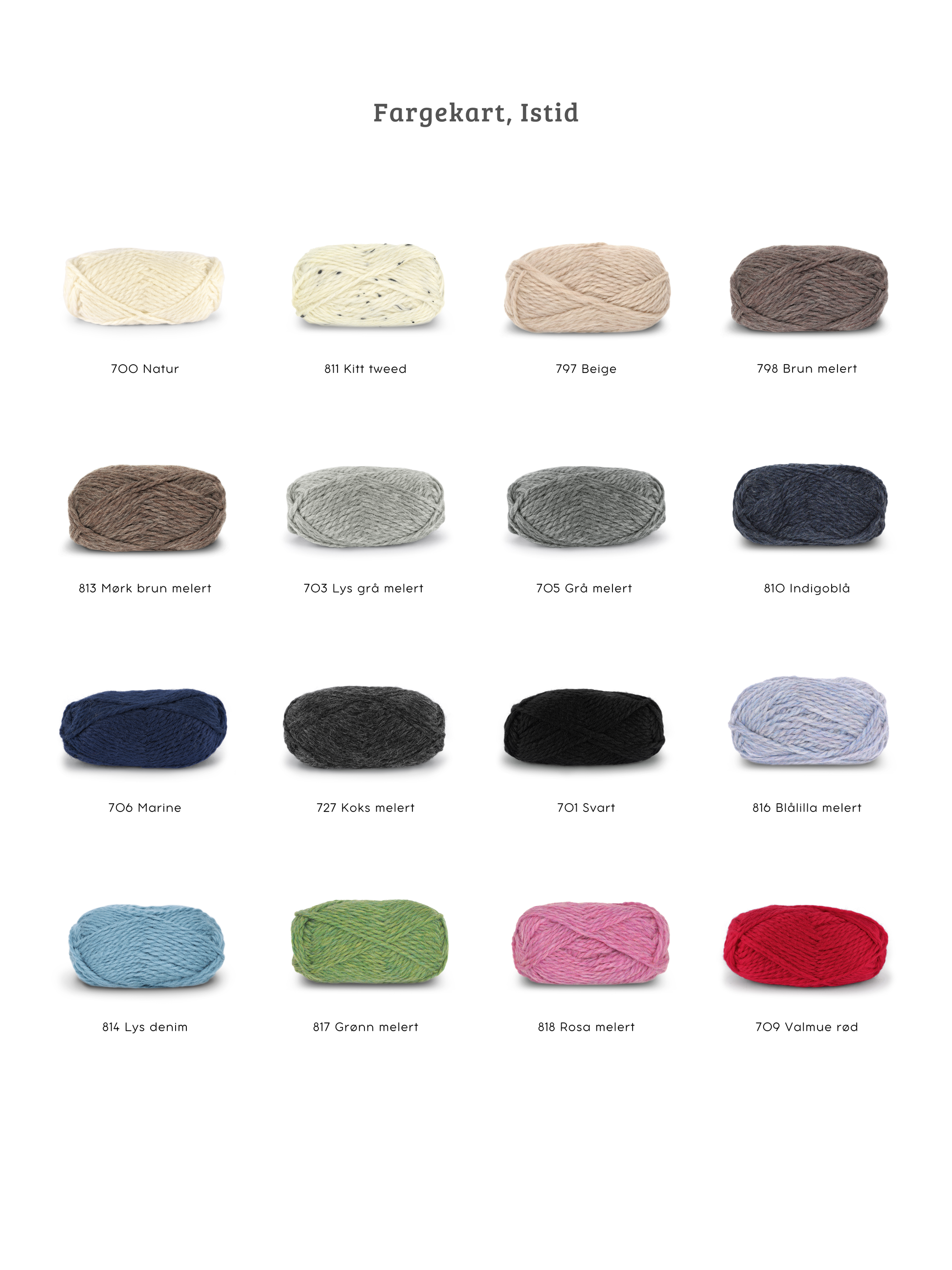 Garnpakken inneholder garn og oppskrift. Oppskriften er digital og sendes som PDF-fil til e-posten din. Om ønskelig kan du legge til rundpinner i bjørk (60 cm, 8 mm) med 25 % rabatt.