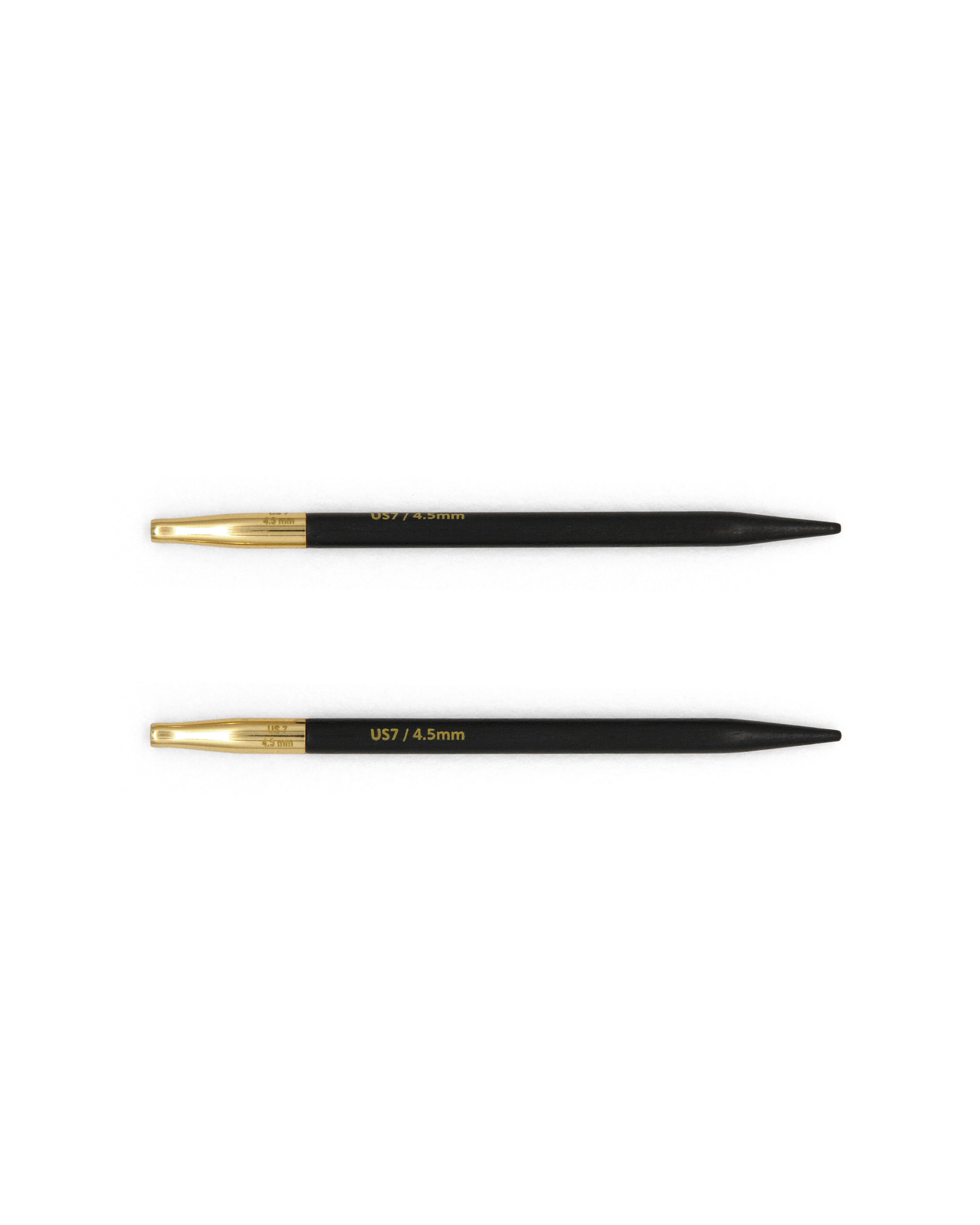 Eksklusive rundpinner i ibenholt og messing med silkeglatt overflate og lett vekt. De presist formede tuppene passer til alle typer garn, og den dreibare vaierfestet sørger for at vaieren ikke vrir seg under strikking. Et luksuriøst valg for den kvalitetsbevisste strikkeren.