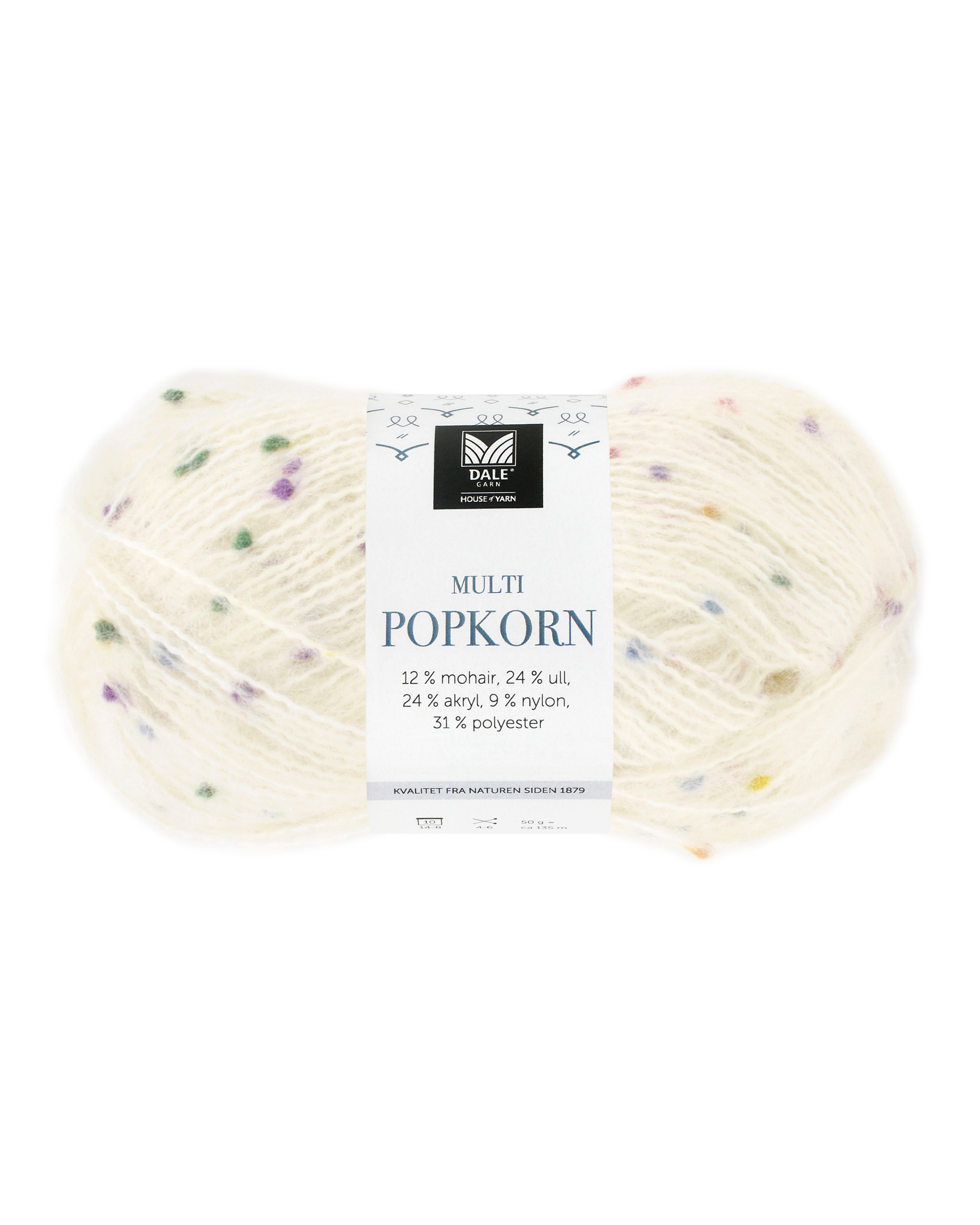 Multi Popkorn er et allsidig effektgarn med små fargerike knupper i garnet. Strikk med en eller flere tråder, på tynne eller tykke pinner, eller legg det sammen med andre kvaliteter for å oppnå spennende effekter.