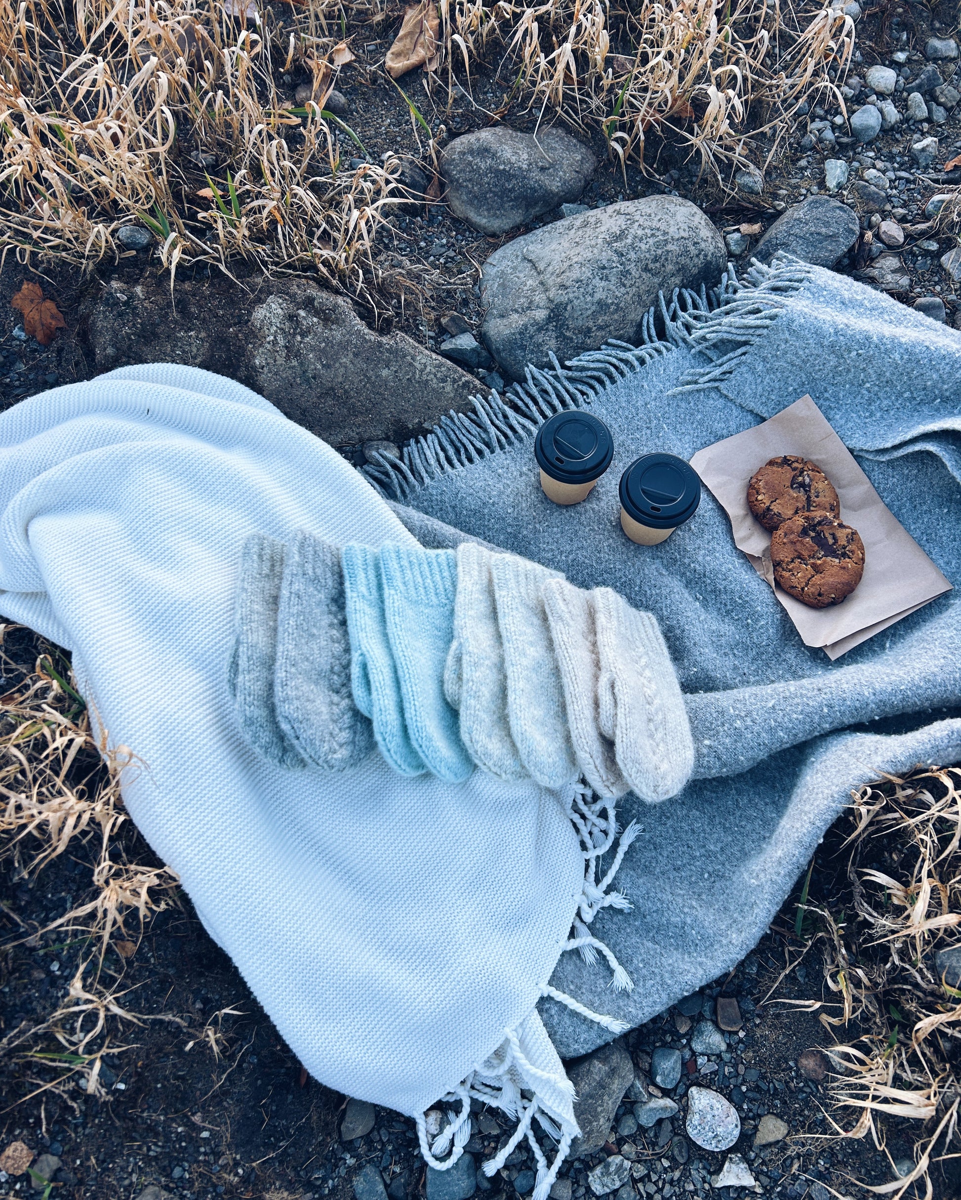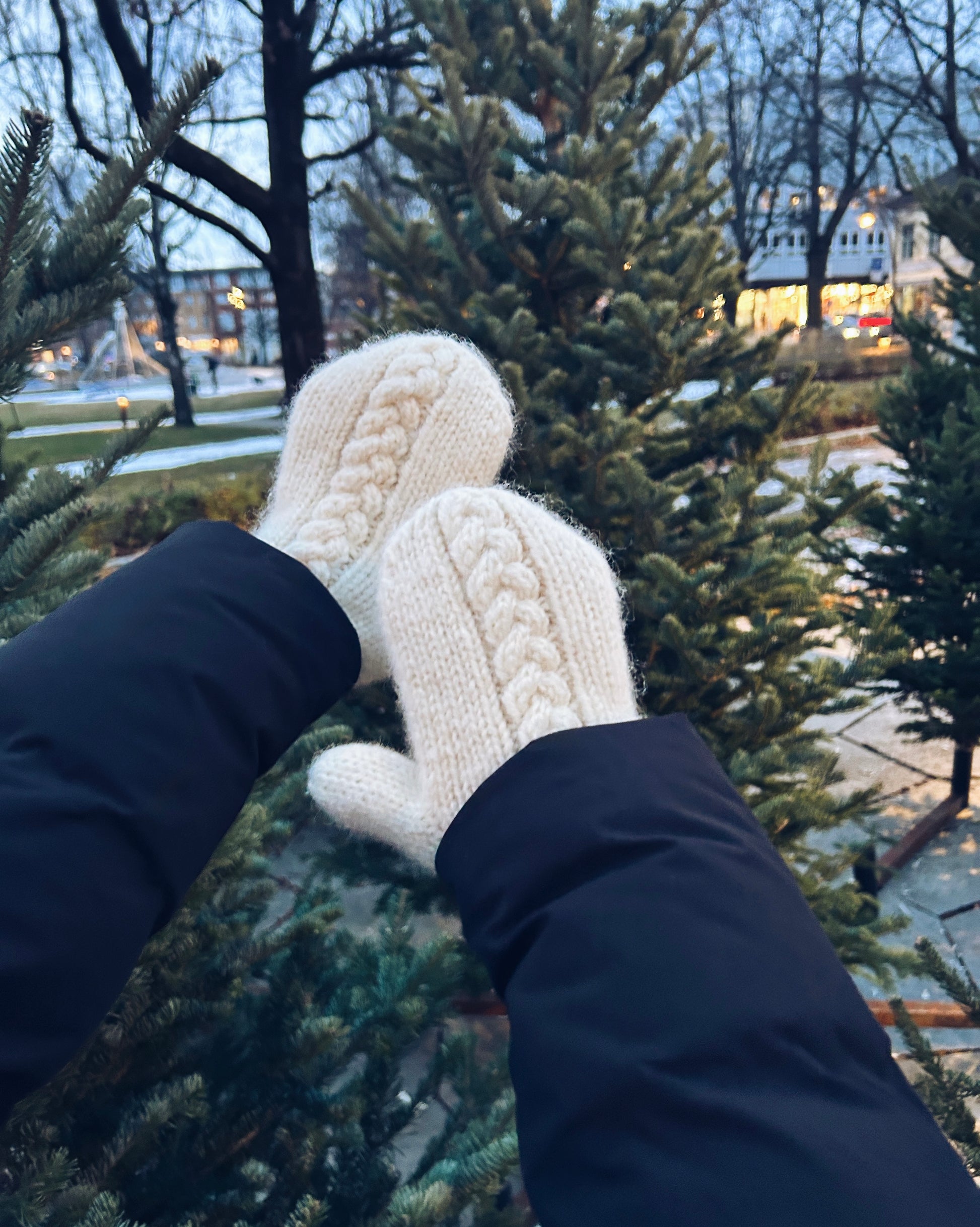Nysnø-vottene har et rent design med flette på oversiden. Strikket i 100 % norsk ull og tovet for ekstra varme – perfekte for kalde vinterdager.