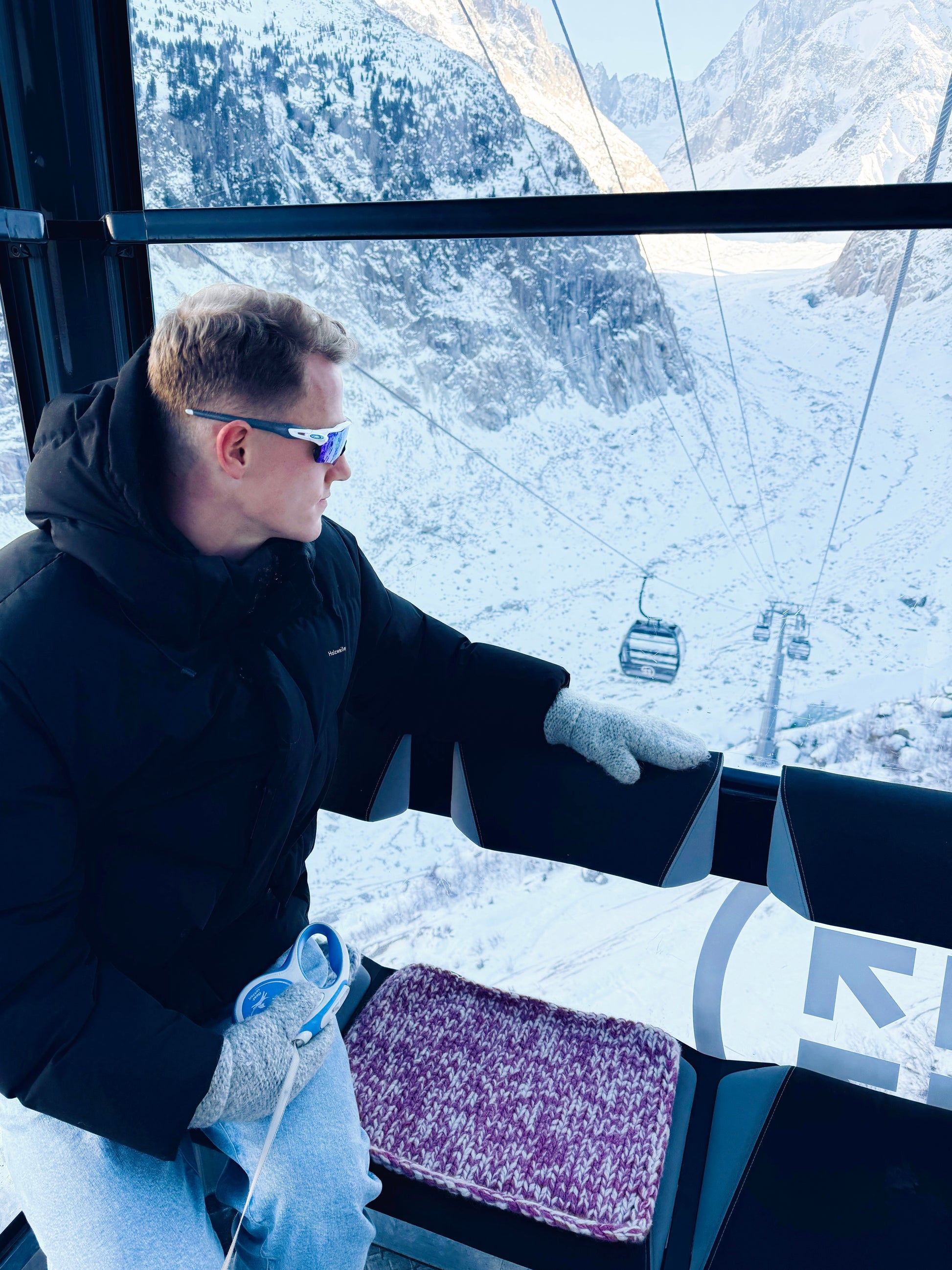 8 m glattstrikk på pinne 12 mm med fire tråder Hitchhiking in Himalaya = 10 cm