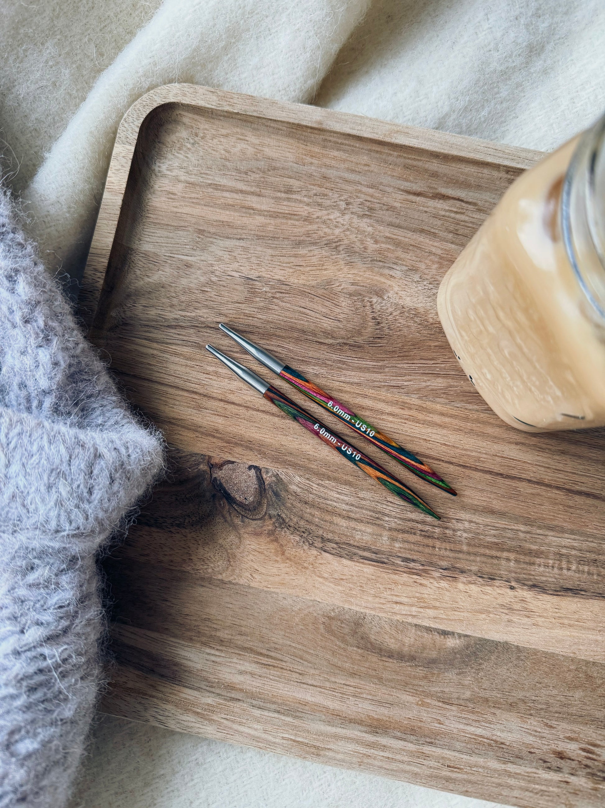 Utskiftbare rundpinner fra KnitPro i regnbuefarget, laminert bjørk - en del av den populære Symfonie-serien. Pinnene er lette, sterke og behagelige å holde i, med glattpolert overflate og presist spissede tupper som gjør strikkingen jevn og behagelig. Utviklet av strikkere for strikkere - laget for mange timer med strikkeglede.